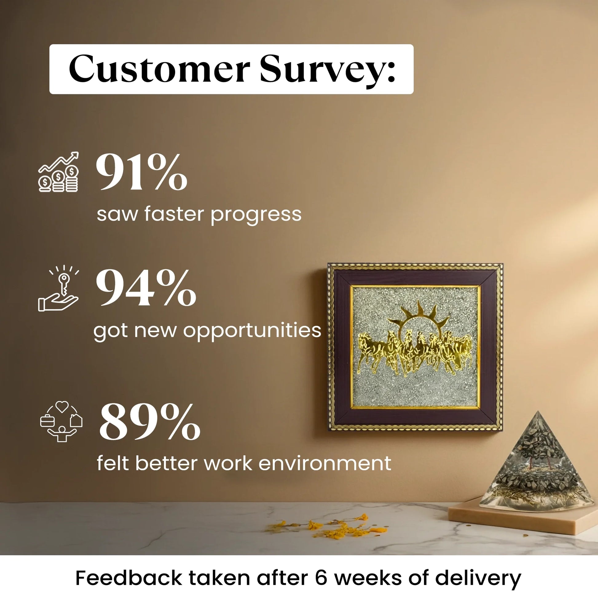 The 7 horses represent speed, power, and victory, helping you overcome obstacles and move forward with confidence. Raw Pyrite, known for attracting money, good luck, and recognition, is beautifully paired with the FREE Money Magnet Pyramid, which amplifies wealth energies and removes negativity.