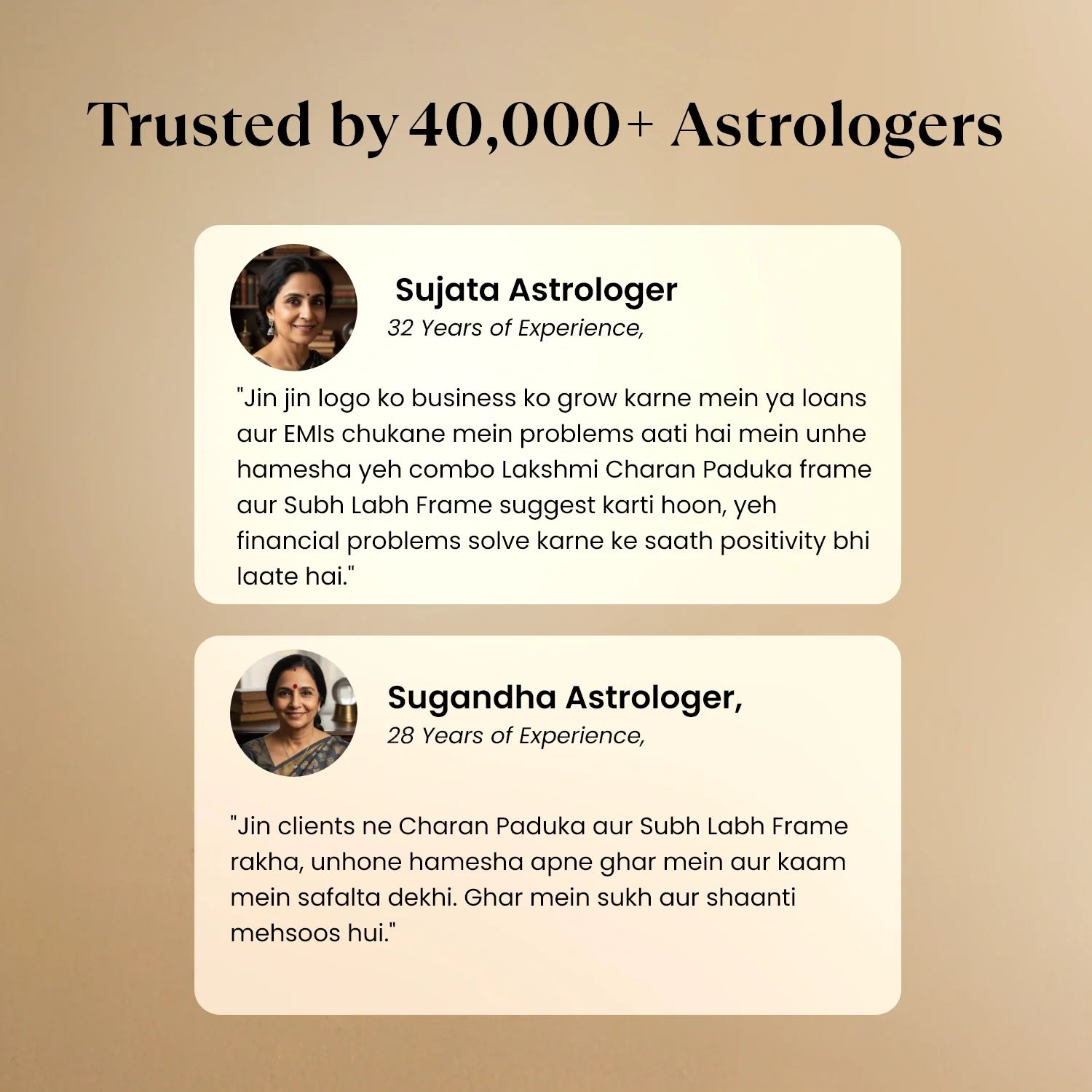 Invite the grace of Goddess Lakshmi and the power of Pyrite into your home or office with the Lakshmi Charan Paduka Frame. The holy footprints symbolize prosperity, peace, and abundance, while Pyrite, the “Stone of Wealth,” attracts money, removes financial blockages, and boosts positive energy.