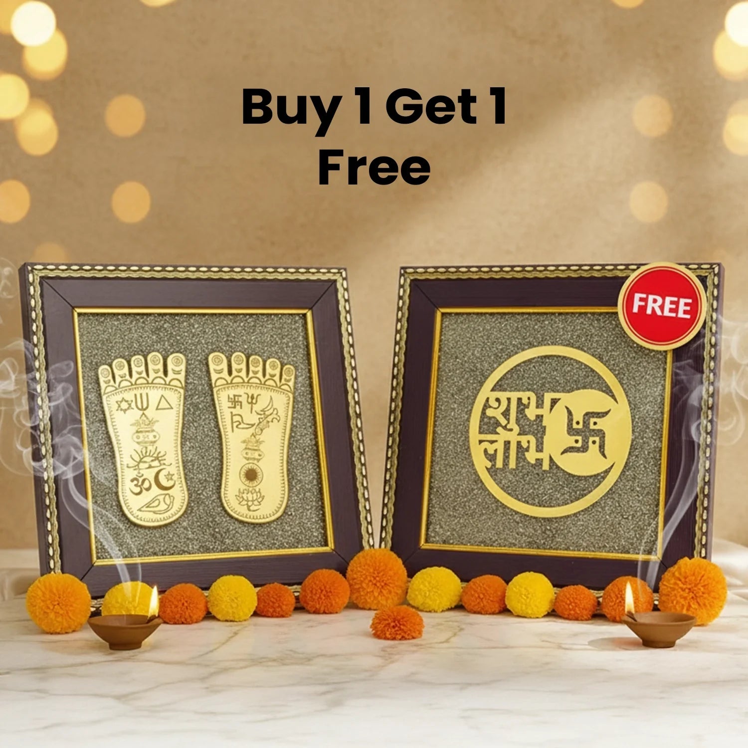 Lakshmi Charan Paduka Frame with FREE Subh Labh Pyrite Frame