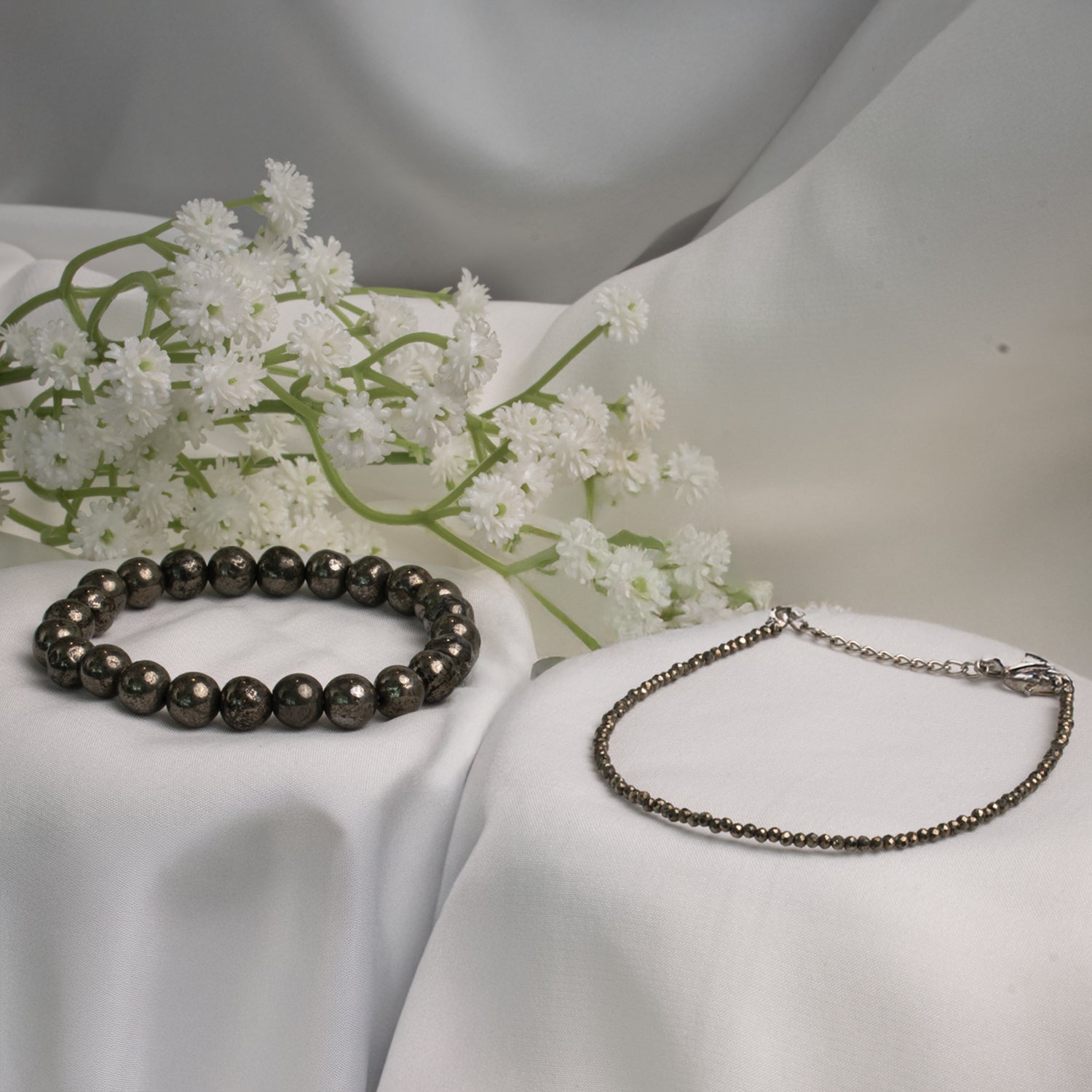 Share the energy of success and protection with the Pyrite Couple Combo, featuring a Raw Pyrite Bracelet and a matching Raw Pyrite Anklet. Known as the “💰 stone of wealth,” Pyrite helps attract abundance, confidence, and financial growth.