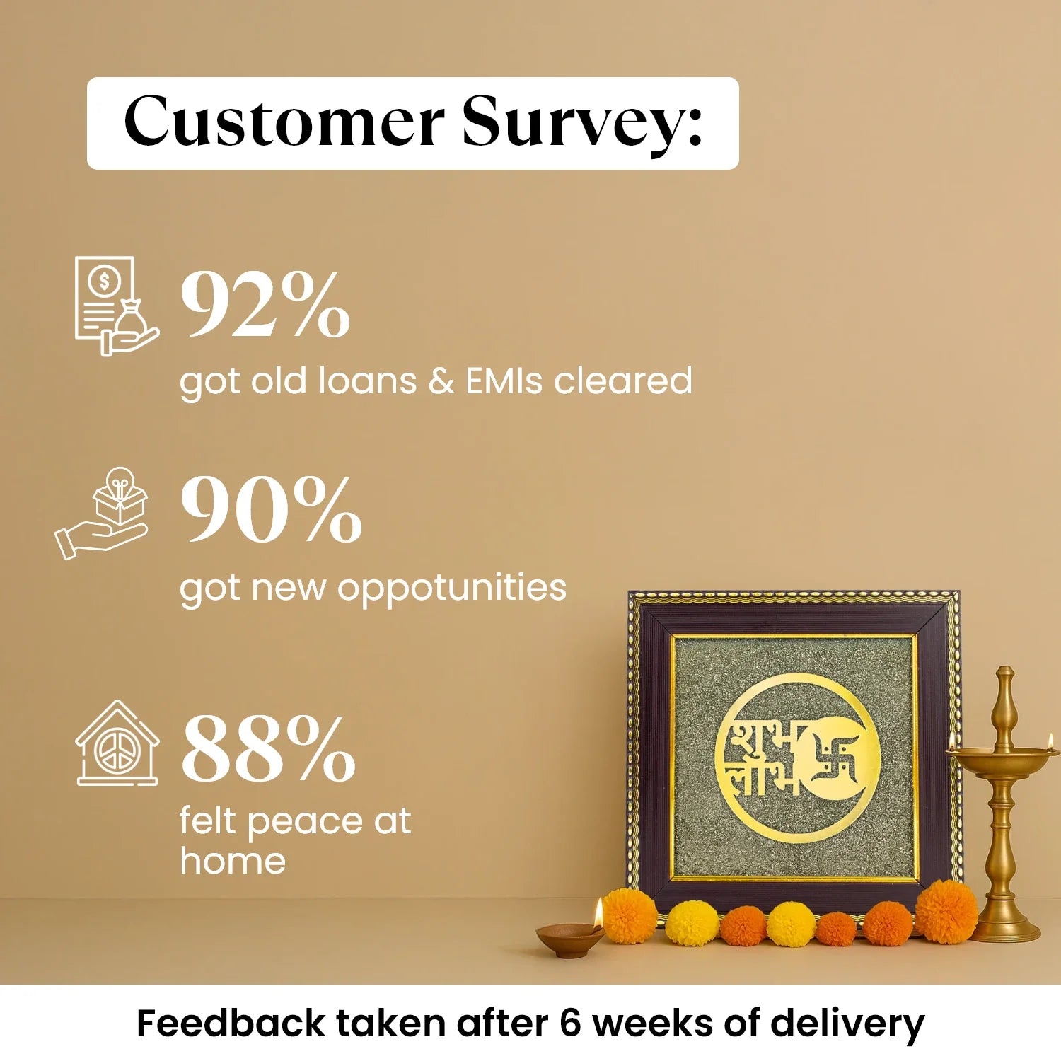 Pyrite based Shubh Labh is a symbol of good luck, wealth, and new beginnings. The words Shubh (goodness) and Labh (profit) bring blessings for peace and financial growth. Raw Pyrite, also called the “stone of money,” attracts wealth, success, and positive energy while keeping away negativity. Together, Shubh Labh and Pyrite make a powerful charm that brings happiness, progress, and balance to your home or workplace. This frame is perfect for homes, offices, and shops to welcome prosperity.