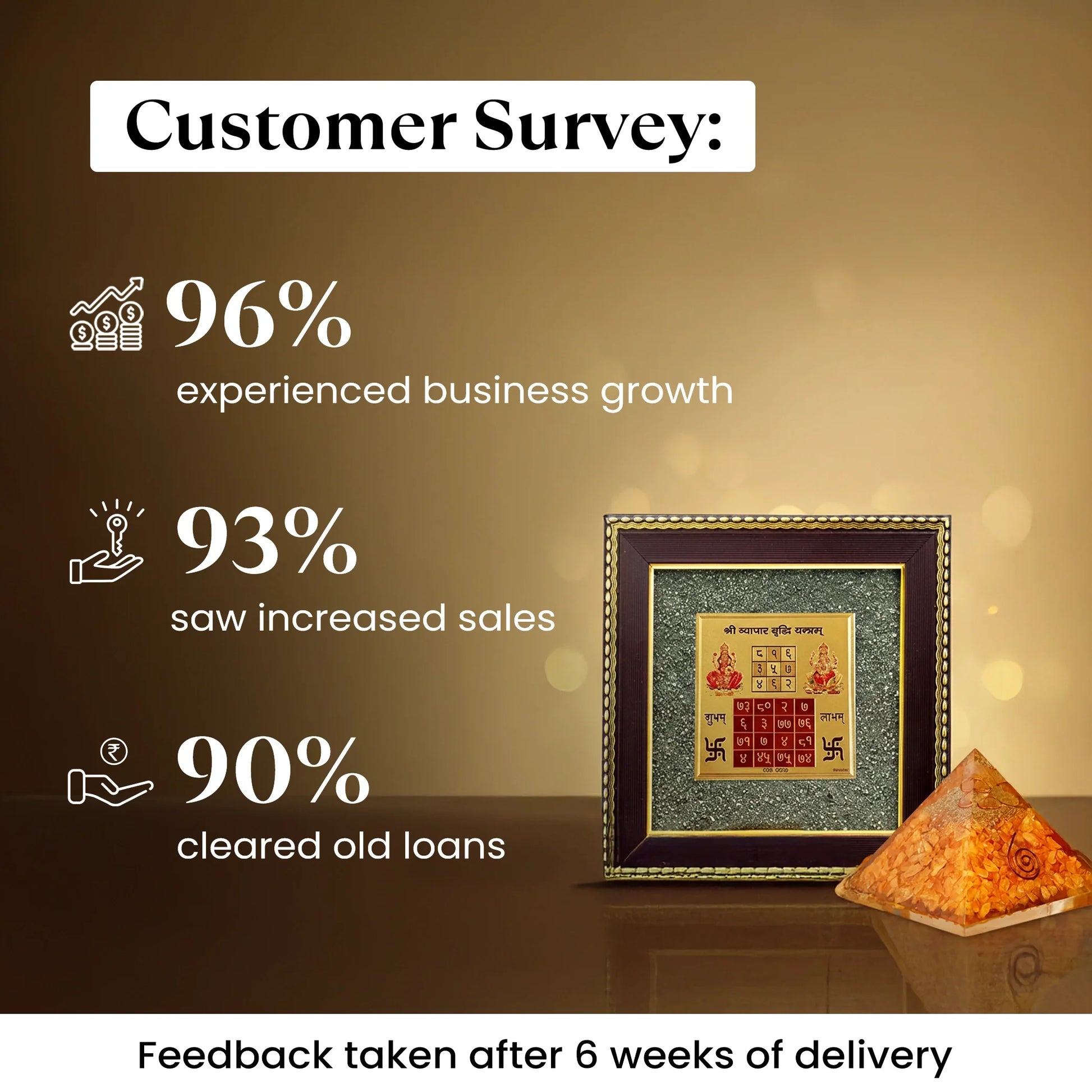 Vyapar Vriddhi Yantra on Pyrite Frame with FREE Citrine Pyramid